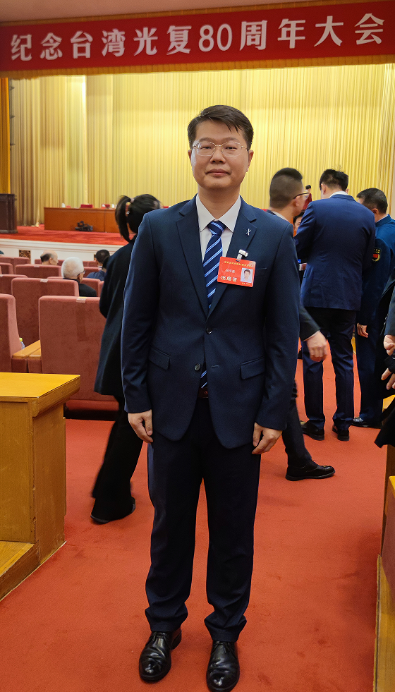 2025年10月25日,纪念台湾光复80周年大会在北京召开。中共中央政治局常委、全国政协主席王沪宁出席并讲话。中央党政军群有关部门和北京市负责同志,各民主党派中央、全国工商联负责同志和无党派人士,首都各界代表及专家学者,港澳台同胞、海外侨胞代表,外国驻华使节及国际组织驻华代表等约500人参加大会。江苏师范大学历史文化与旅游学院副教授、苏台合作与发展研究中心执行主任郝天豪作为专家学者受邀参加大会。