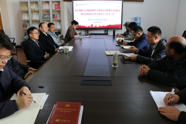 3月27日,历史文化与旅游学院召开树立和践行正确政绩观学习教育读书班集中交流研讨暨党委理论学习中心组学习(扩大)会。院党委理论学习中心组全体成员、各学科组组长及系主任参加会议。